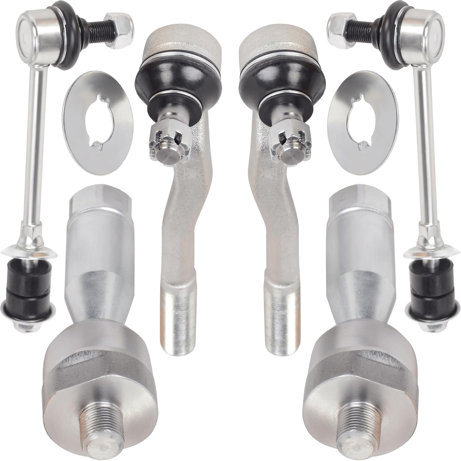 Kit Includes: 2 Front Stabilizer Bar Links and 4 Front Inner & Outer Tie Rod Ends designed to support stable suspension movement, consistent steering linkage, and smooth steering operation.