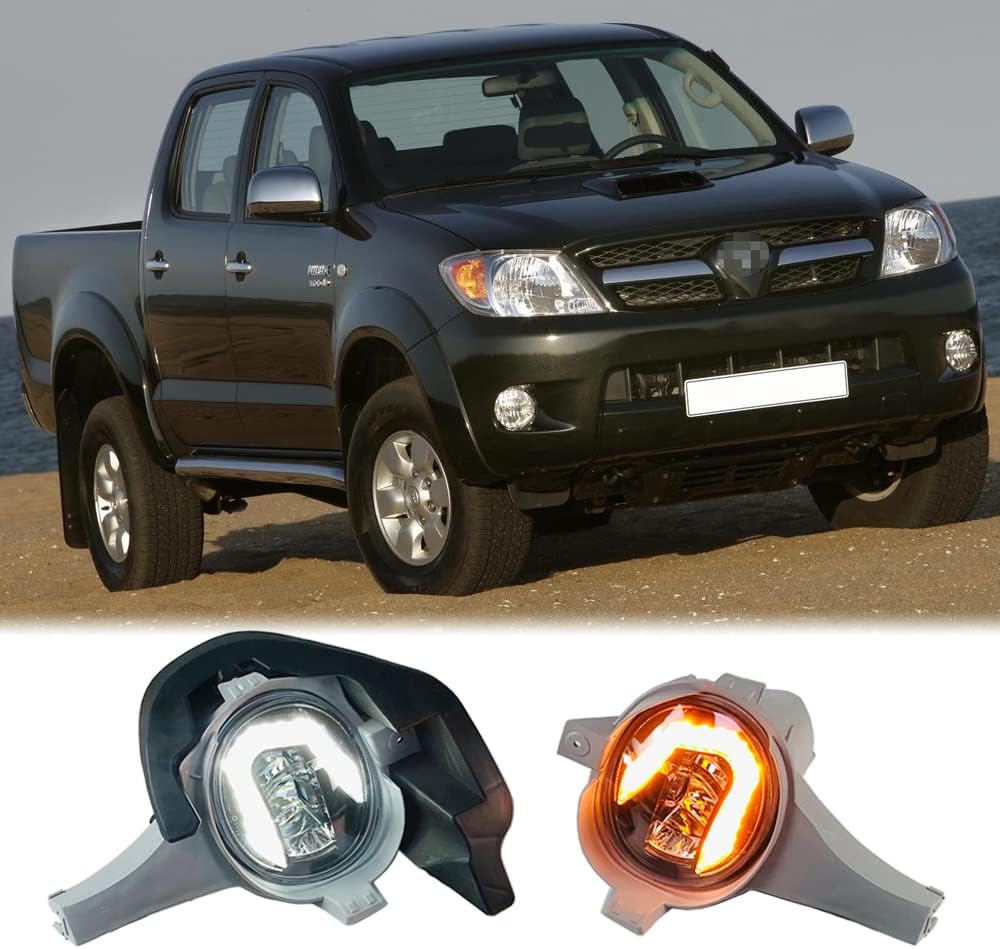 Dreamseek LED DRL Driving Fog Lamp Assembly for Toyota Hilux Vigo 2004 2005 2006 2007 Front Bumper Light with Dynamic Sequential Turn Signal