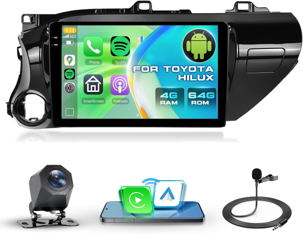 4G+64G Car Stereo for Toyota Hilux 2015-2020 with Wireless Carplay and Android Auto, Driauto 10.1 Inch Touch Screen Android Radio for Toyota Hilux with Bluetooth Mirror Link WIFI GPS SWC FM/RDS EQ USB