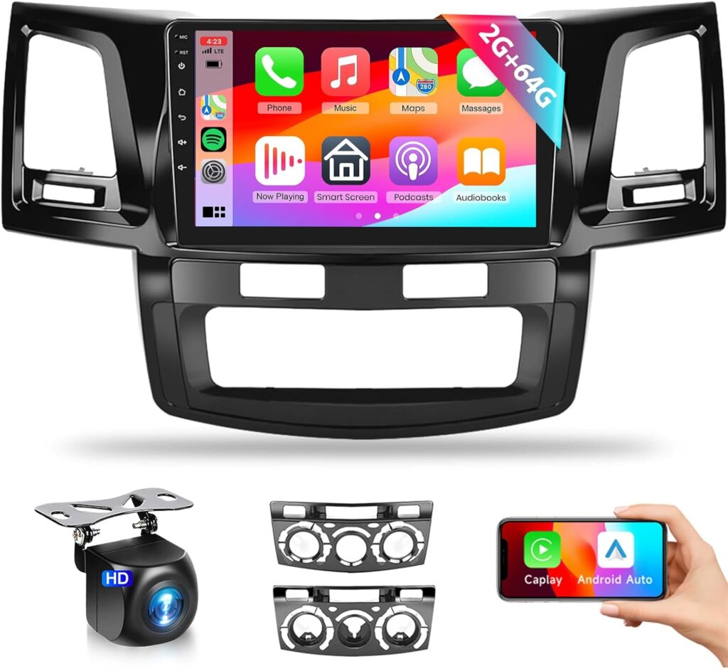 Podofo 2G 64G Wireless CarPlay Car Stereo for Toyota Hilux Fortuner 2005-2014,9inch HD IPS Touch Screen Android Bluetooth Radio with Wireless Android Auto MirrorLink GPS HiFi Audio WiFi Backup Camera