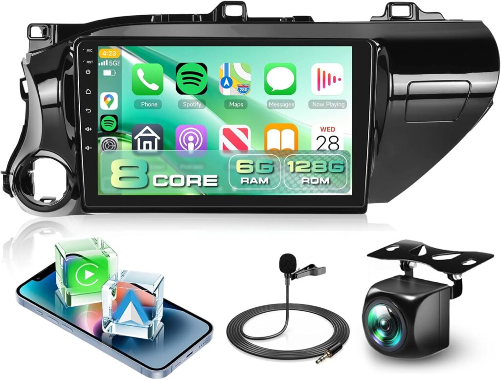 8 CORE 6G+128G Car Radio for Toyota Hilux 2015-2020 with Wireless CarPlay&Android Auto,10.1 Inch 1280*720P IPS Touch Screen Android 13 Car Stereo with GPS WiFi Bluetooth 32-Band DSP HD Backup Camera