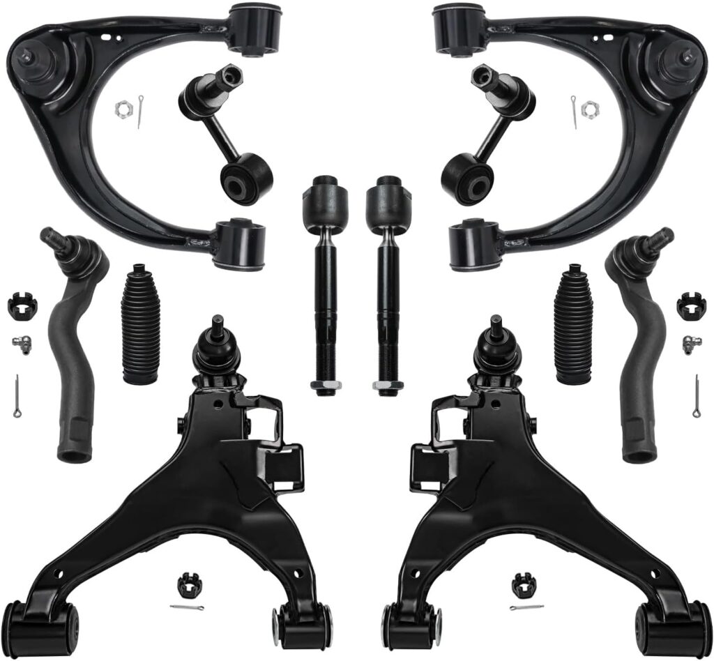 Detroit Axle – Front 12pc End Suspension Kit for 2008-2019 Toyota Sequoia, 2007-2019 Tundra, 4 Upper Lower Control Arms w/Ball Joints 4 Tie Rods 2 Sway Bar Links 2 Boots Replacement
