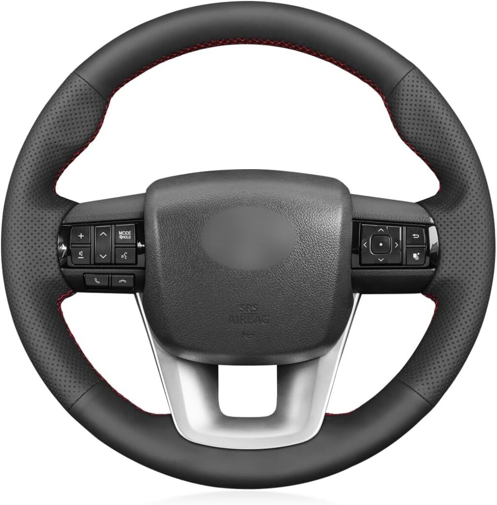 MEWANT Car Steering Wheel Cover for Toyota Hilux/Fortuner Hand Stitch Leather Car Steering Wrap