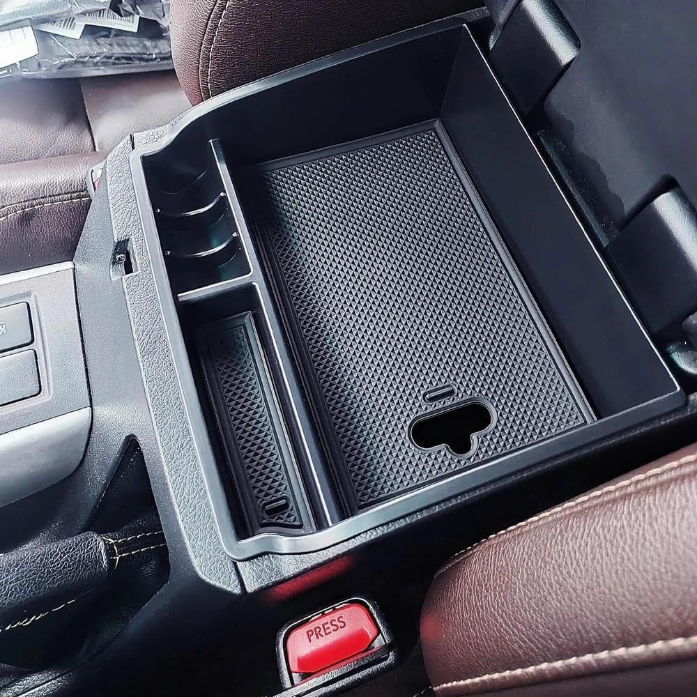 This center console storage tray fits seamlessly into your vehicle’s stock design, reducing the hassle of cleanup and keeping your console clutter-free
